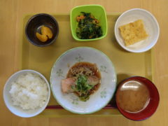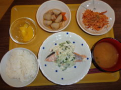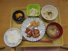 ある月の昼食の一部を紹介させて頂きます☆以前にもご紹介させて頂きましたが、デイサービス赤石では自家厨房での調理を行っており、調理の段階からいい匂いがご利用者様に届きはじめ、今日は何かな?!と楽しんで頂けます。また、お食事時間には温かいものは温かいうちにご提供させて頂けご利用者様にもご好評いただいております☆