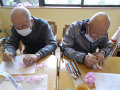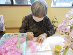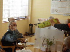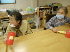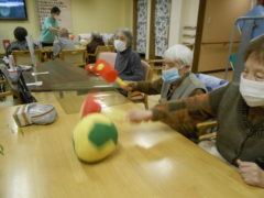 ある日のレクリエーションでは、ピコピコハンマー使ってをご利用者様に柔らかいボールをリレーのように送って頂きました☆力加減を上手に調節しながらパスをお出し頂きました☆
