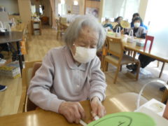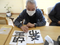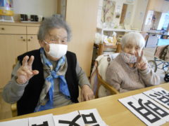 ある日のレクリエーションでは、ある漢字の書かれたパズルを組み合わせて、漢字パズルを完成していただき言葉まで完成していただきました☆完成後は皆さん笑顔でポーズ写真を撮らせて頂きました♬