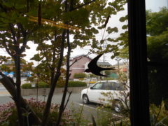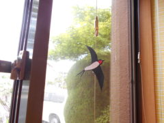 デイサービス赤石の室内での風景を少しご紹介させて頂きます!日常の中で最近、空を飛び回り巣作りを始めようとするツバメを見かけますね。デイサービス赤石の室内にも手作りのツバメが登場しています!窓の外を飛び交うツバメのように楽しませてくれます♬