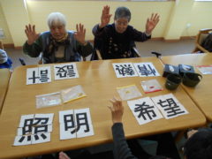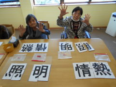 この日のレクリエーションでは、大きな漢字のパネルをご利用者様に組み合わせていただく事で、たくさんの言葉を作っていただきました!たくさんの組み合わせを作っていただき皆様の笑顔があふれていました☆