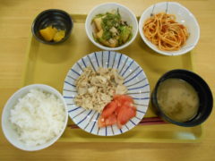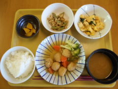 デイサービス赤石のある日の昼食を一部ですが、ご紹介させていただきます!調理を同じ建物内で行っておりますので、あたたかいものは温かく提供させていただくことが出来きます♪