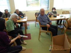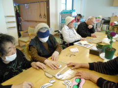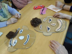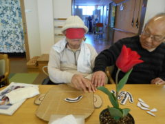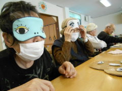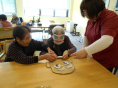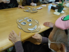 この日のレクリエーションでは、ご利用者様に目隠しをして頂き手元の感触でパーツを置いて頂き、顔を完成していただきました!素敵な顔がたくさんが完成しご利用者様の顔も笑顔も素敵でした☆彡