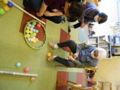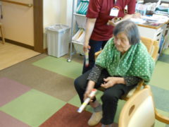 この日のレクリエーションでは、玉入れのカゴに新聞紙を貼りその新聞紙を玉いれをしていただく事で破いてもらうと言う、玉入れを行いました!通常の玉入れとはひとあじちがいなかなか新聞が破れずむずかし~い玉入れでしたが、いつ破れるかと楽しんで玉入れをして頂きました!