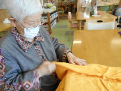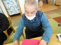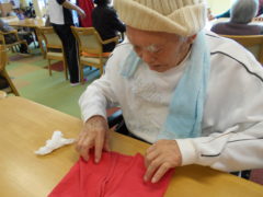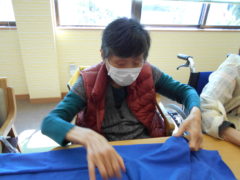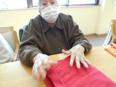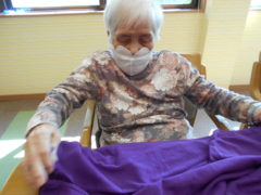 この日のレクリエーションでは、チームに分かれて様々な洗濯物をたたんで頂くレースを行いました!様々な洗濯物を、見事な手さばきでご利用者様にたたんで頂き大接戦なレースとなりました☆