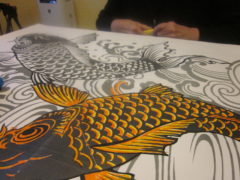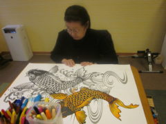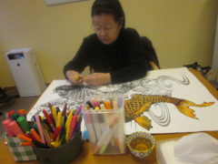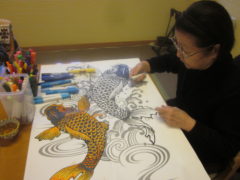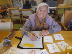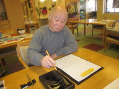 絵をかいたり、好きな一文字を書いたり