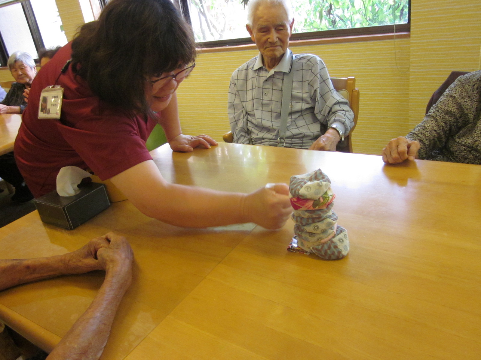 さあ指定された数だけお手玉が詰めるかチャレンジ、しかしスタッフの邪魔が入り、