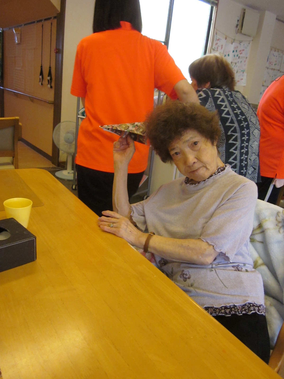 個々で紙ヒコーキを作成し遠くに飛ばした方の勝ち