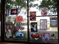 お土産に切り絵を作りました。全て違う絵なので早い者勝ちで選んでいただいてます。