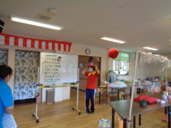 今週デイサービス赤石では敬老会を開催しています。スタッフが毎日違うマジックを披露しています。