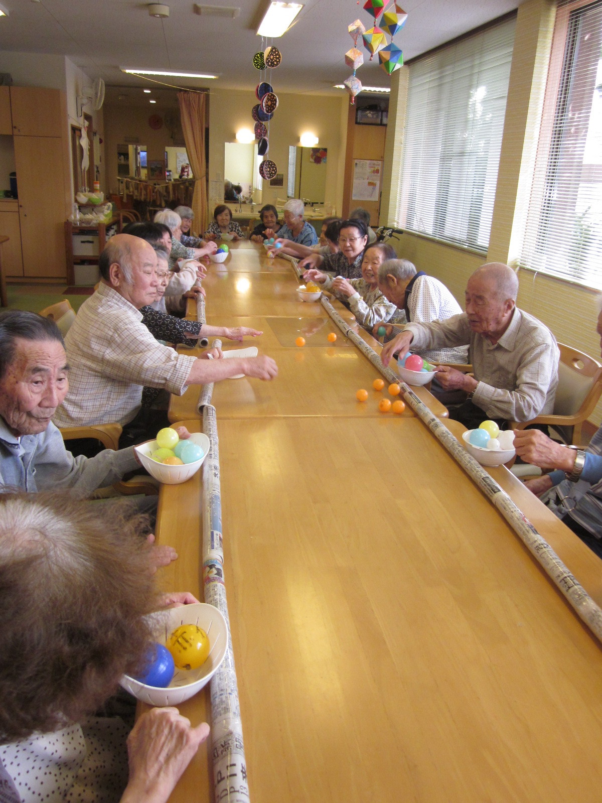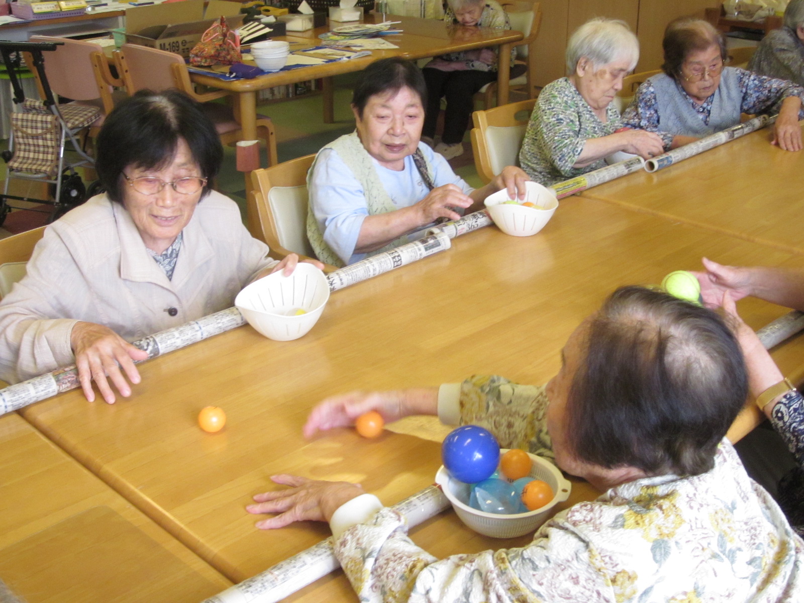 お手玉を積み、一番高く積んだチームの勝ち