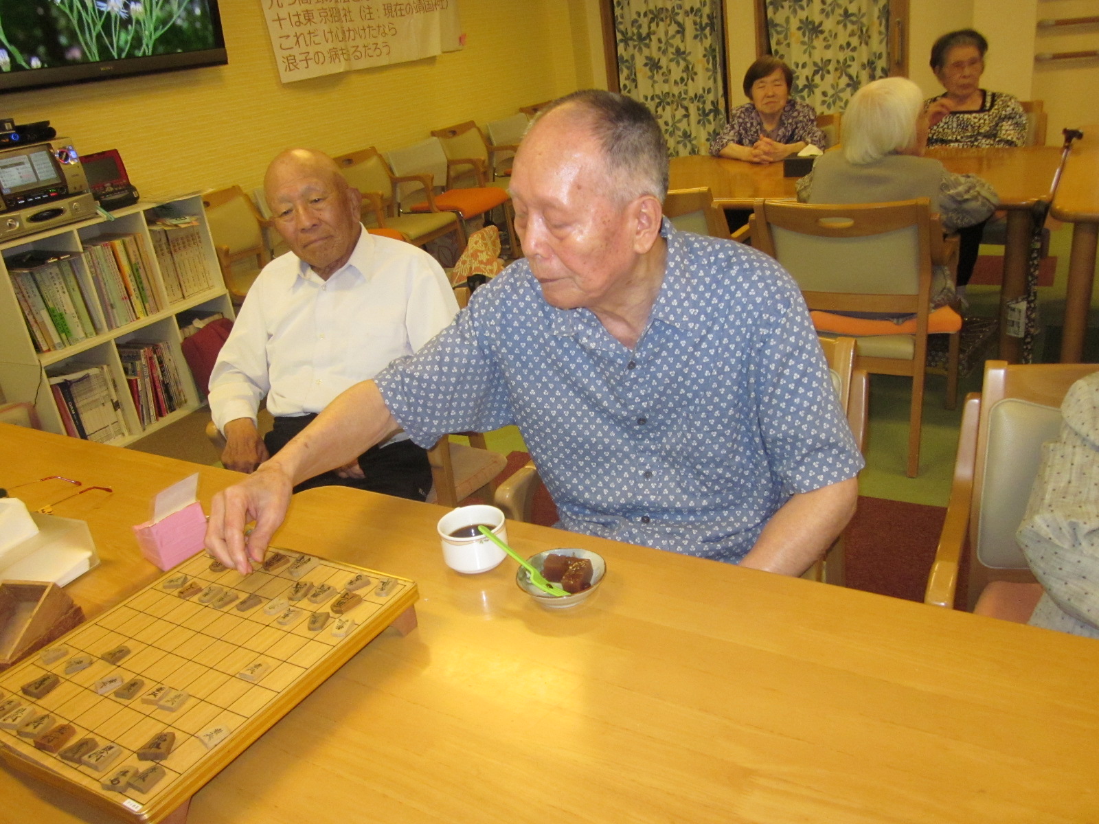 将棋で対戦している男性陣は目もくれず、、、