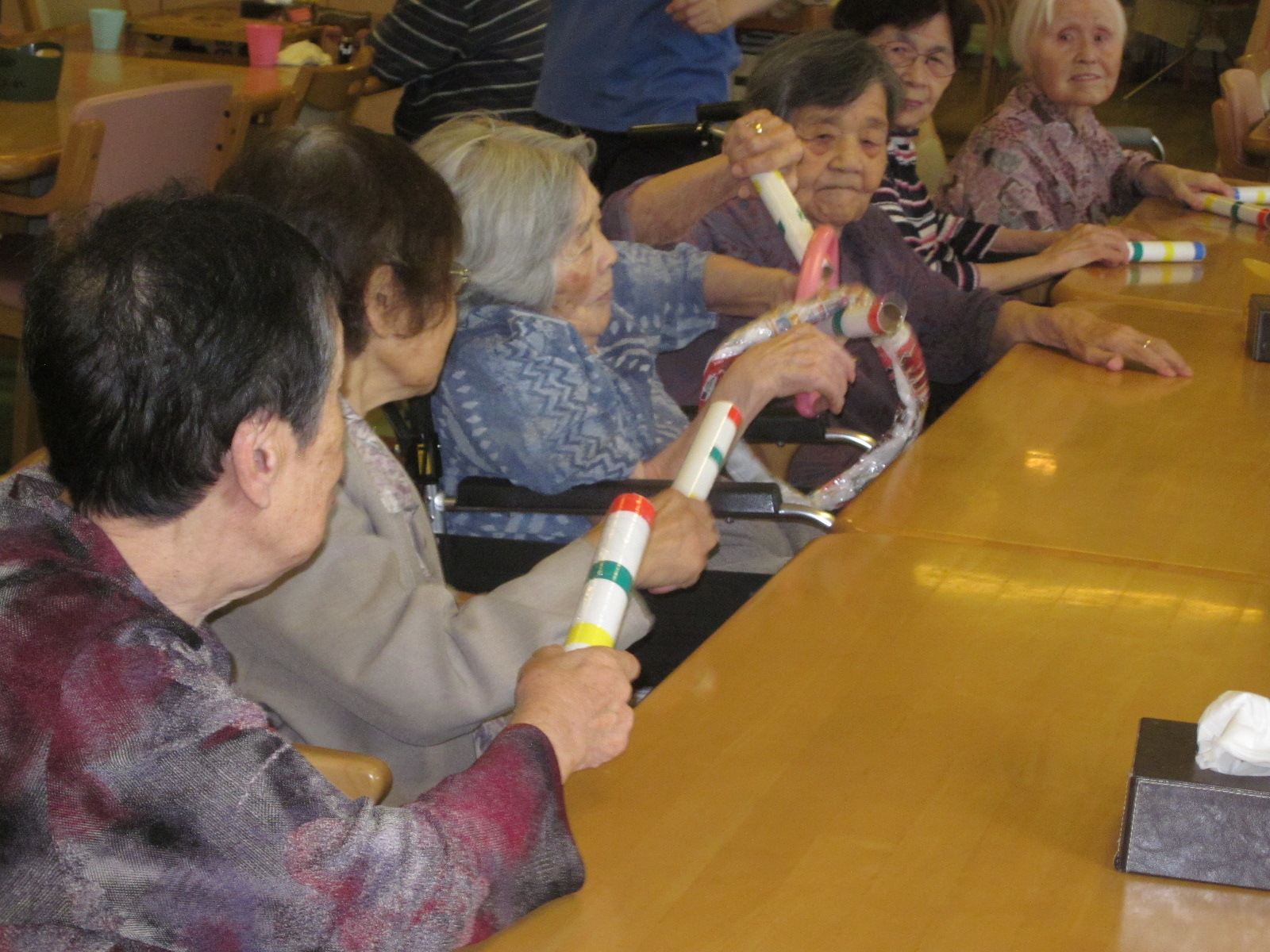 声をかけ合ったり、お話ししたり、お互いに励まし合ったり