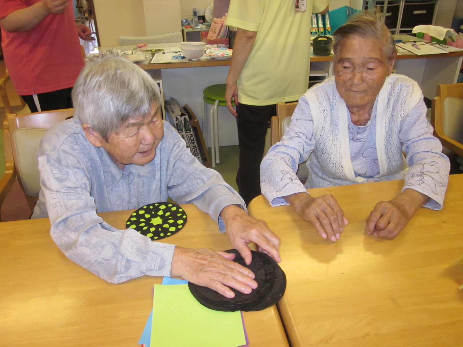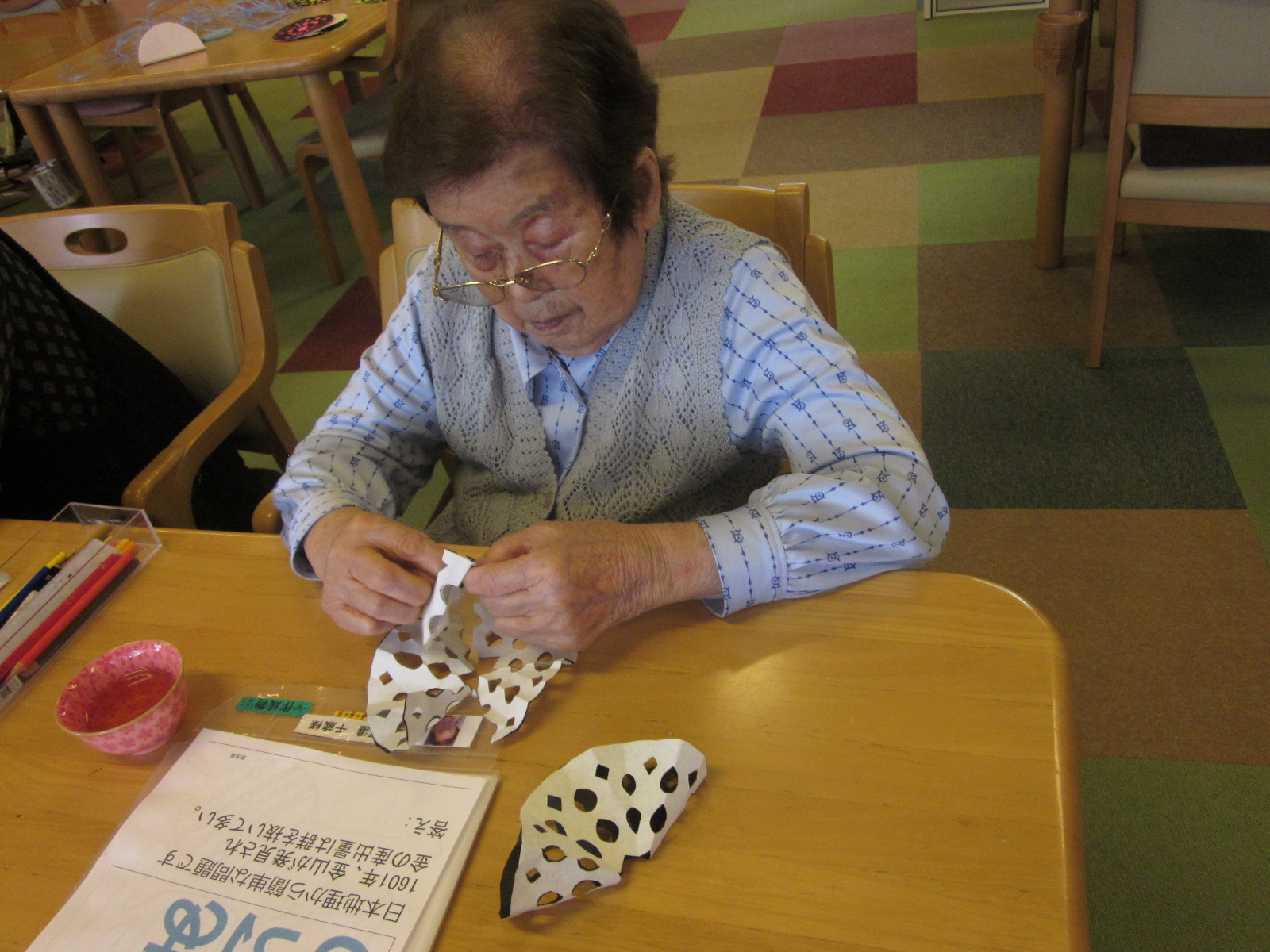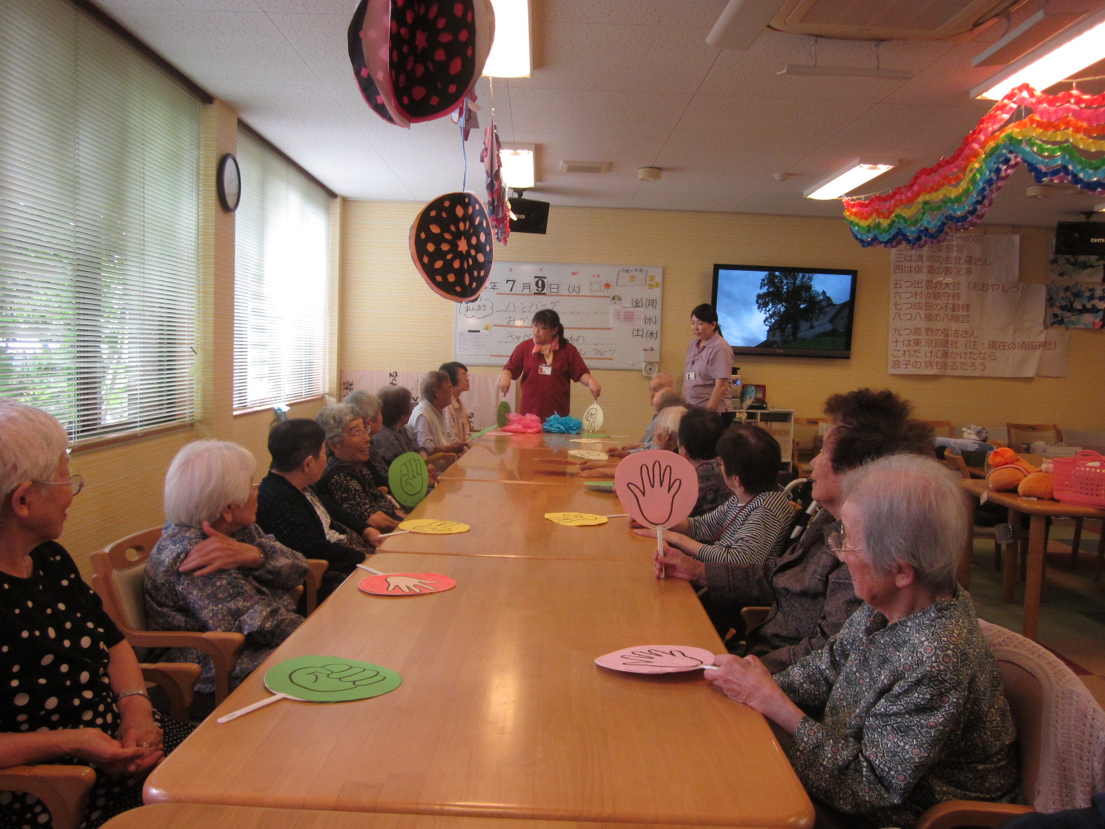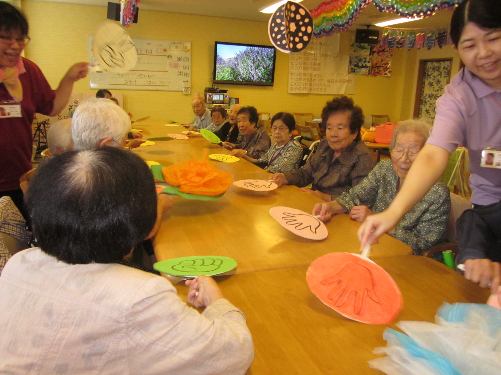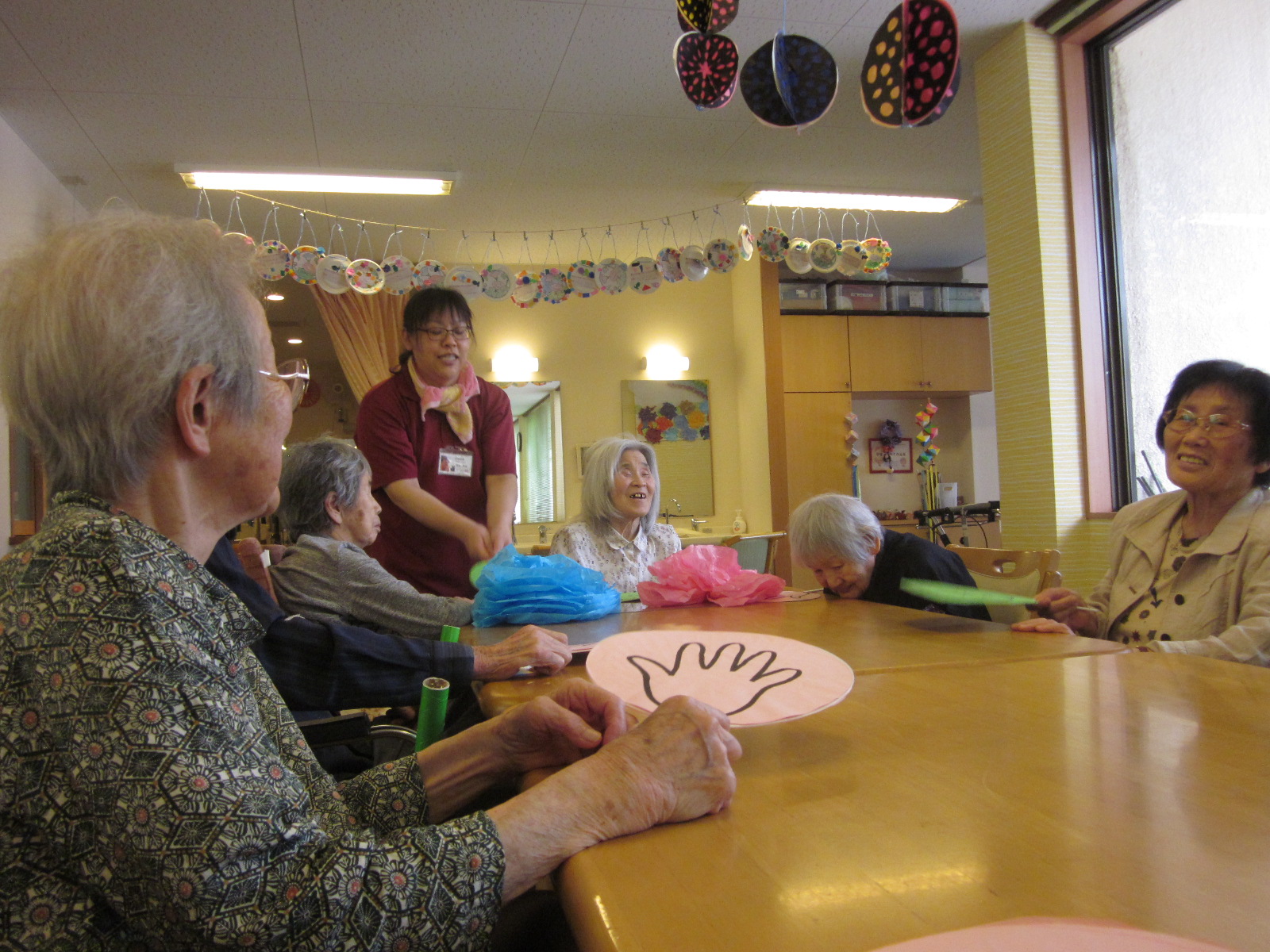 折って、切って、開いて、貼って、吊るして、皆作業の様に持ち回りの作業を行ってくれていました、スタッフが言うわけでもなく、それやろうか?と声をかけてくれたり、やってみたいとの声も!(^^)!