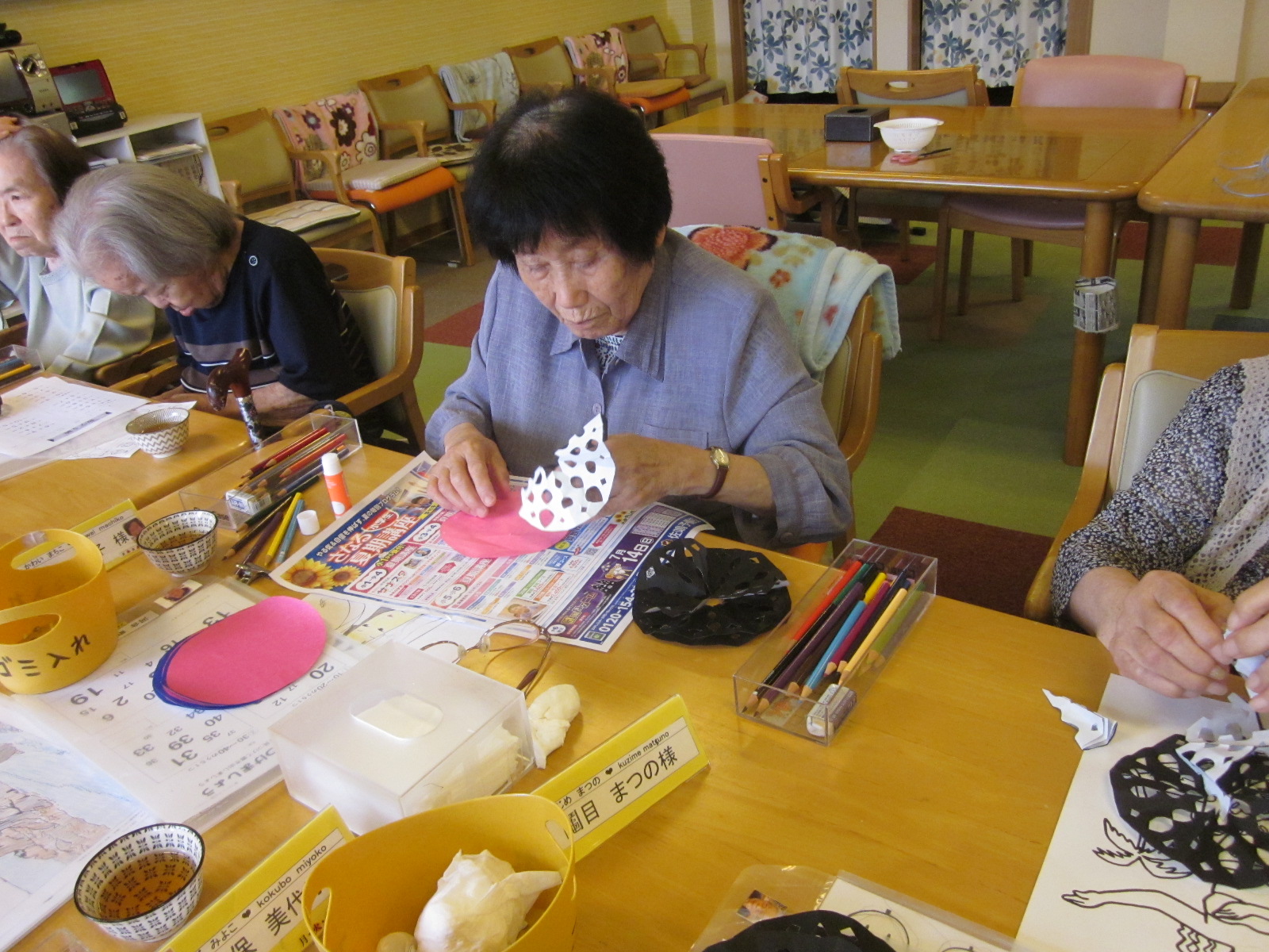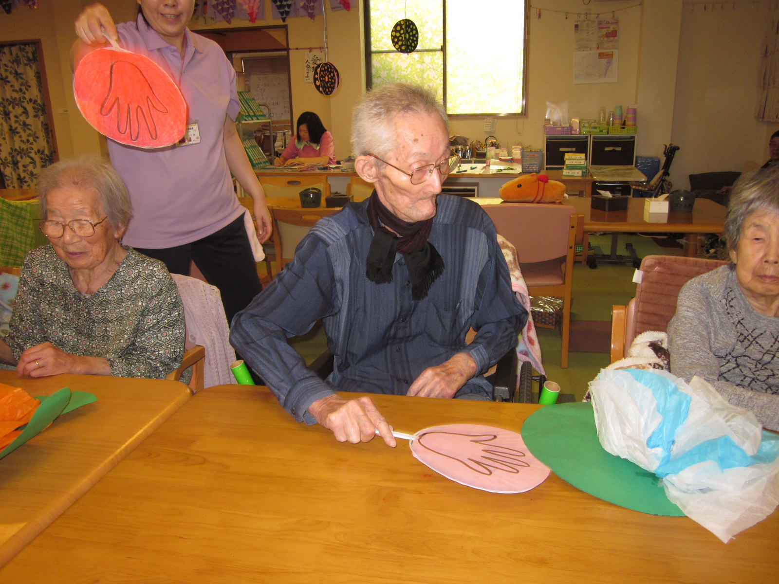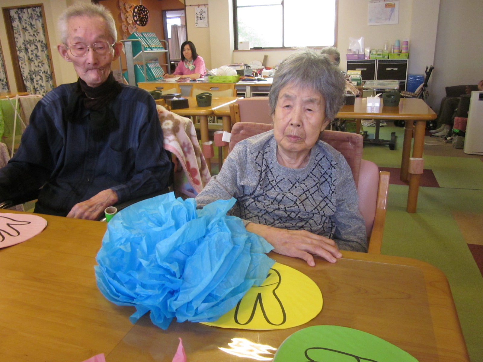 作品が終わり、次は何やる?の声が多くなり嬉しいです、デイルームも本当に華やかに飾る所が無いくらいにぎやかになってきました