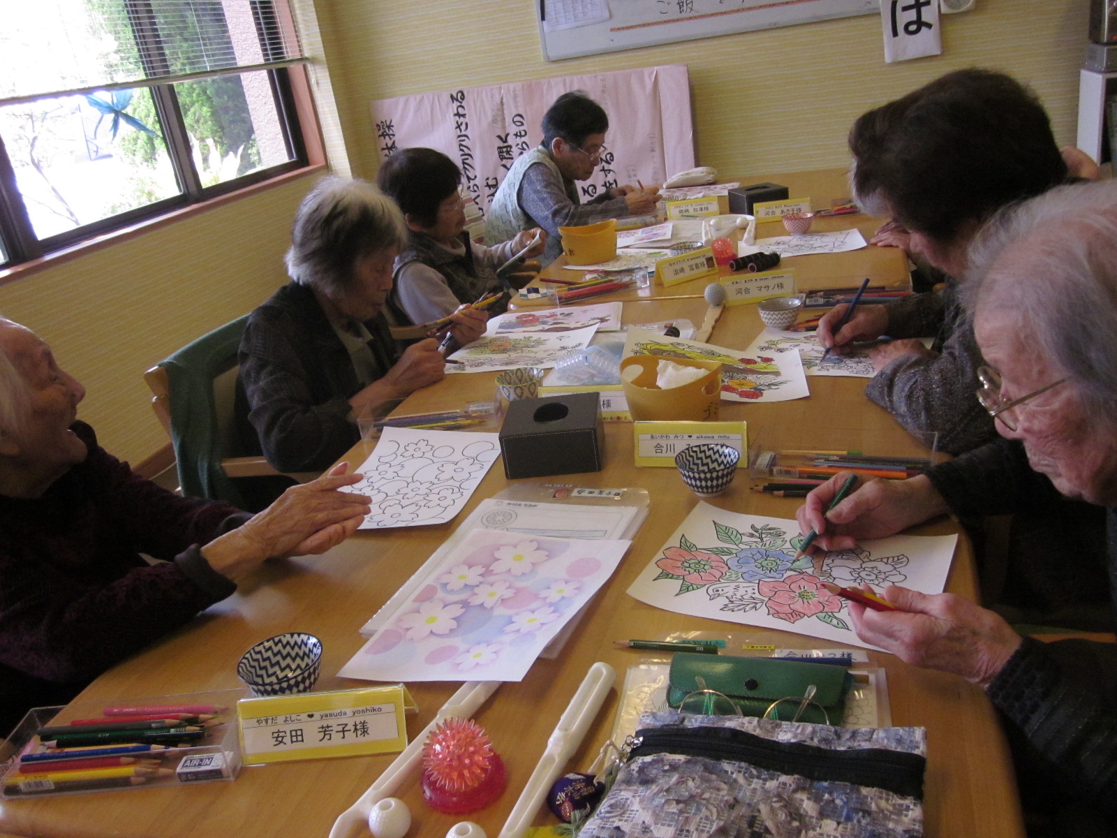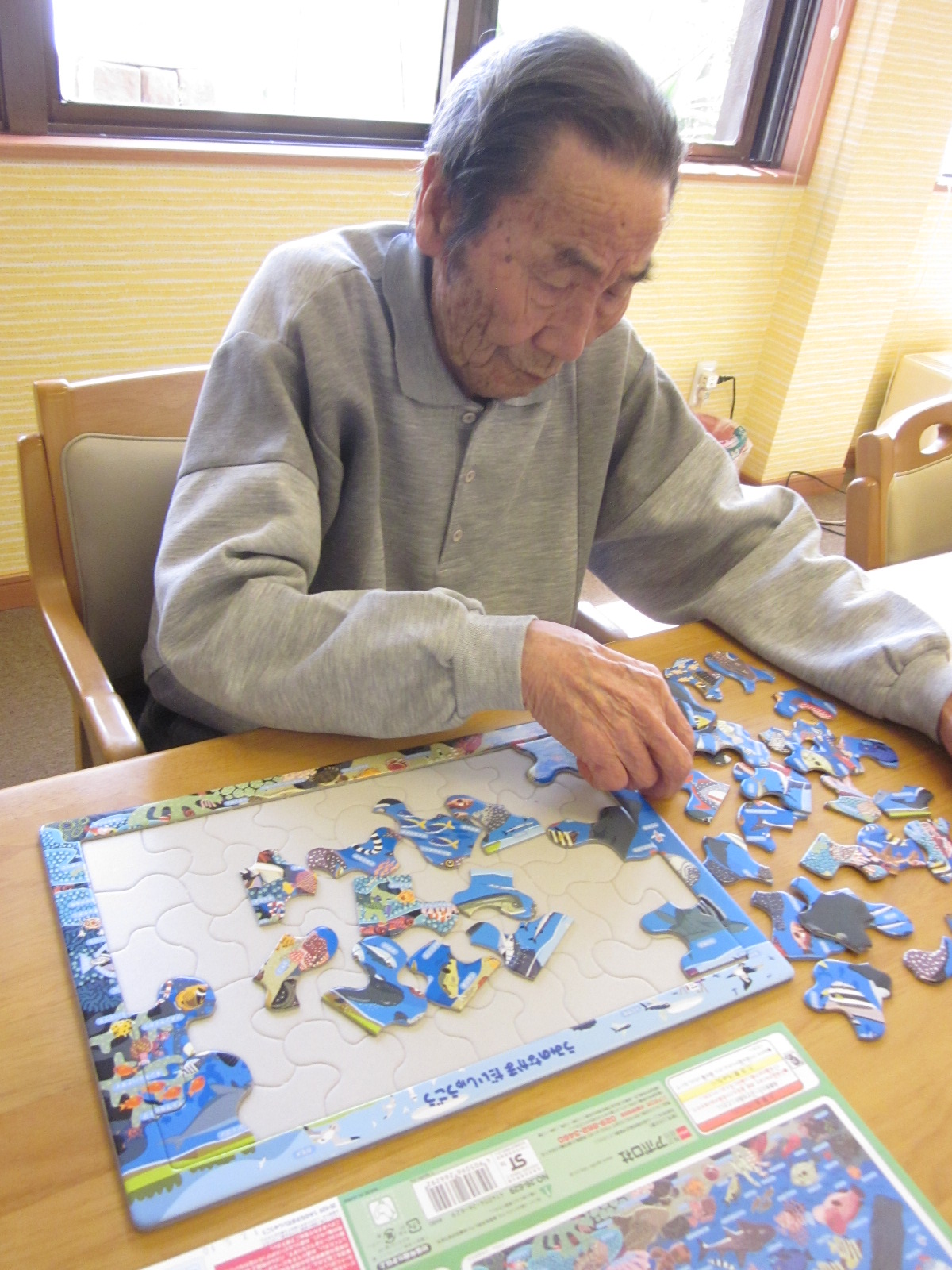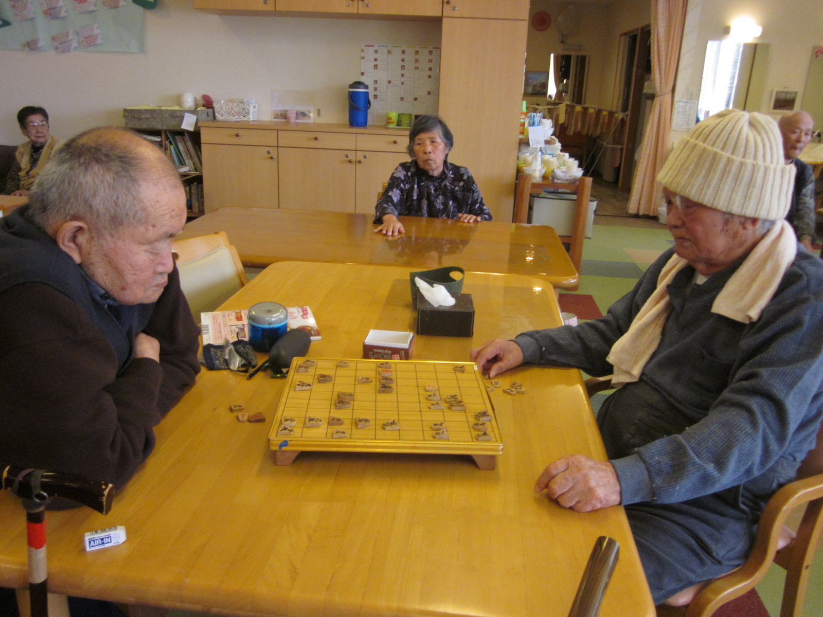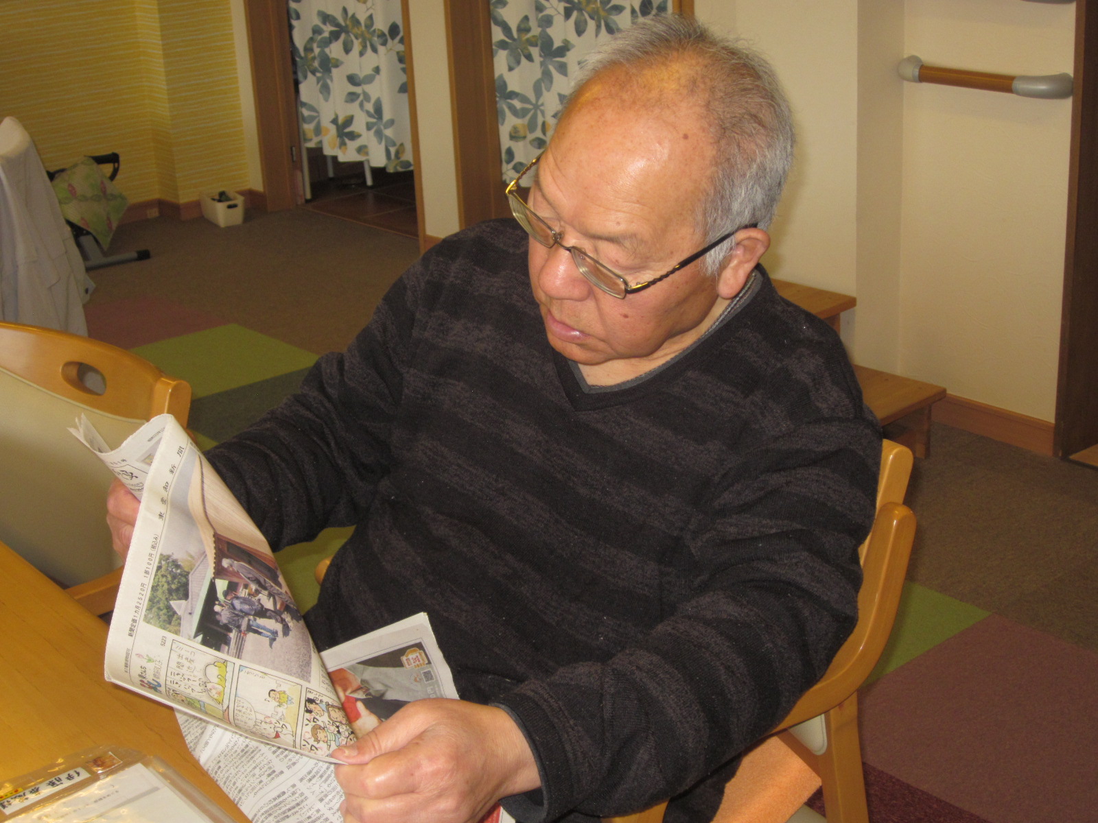 食後のひと時 パズル、新聞、読書、将棋、テレビ、睡眠、ソファーでお話し、思い思いにゆっくり集団レクリエーションまで過ごされています、洗濯物も干してくれます、ありがたや~