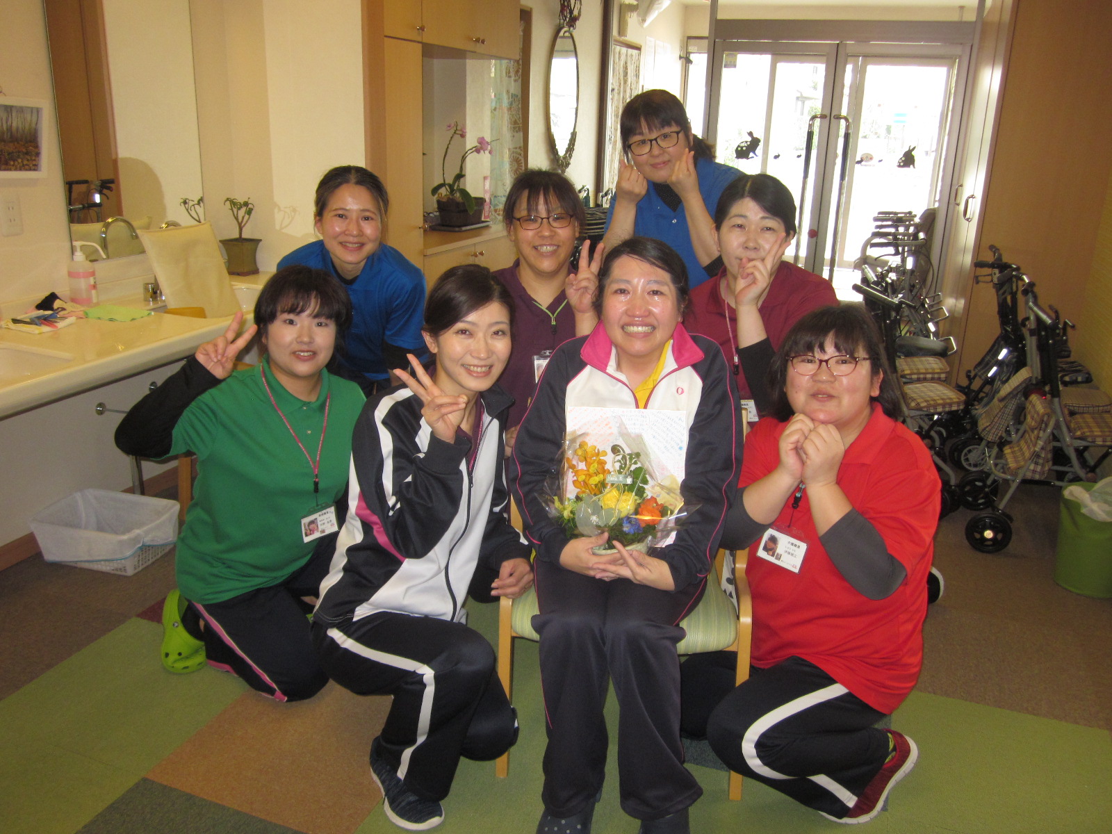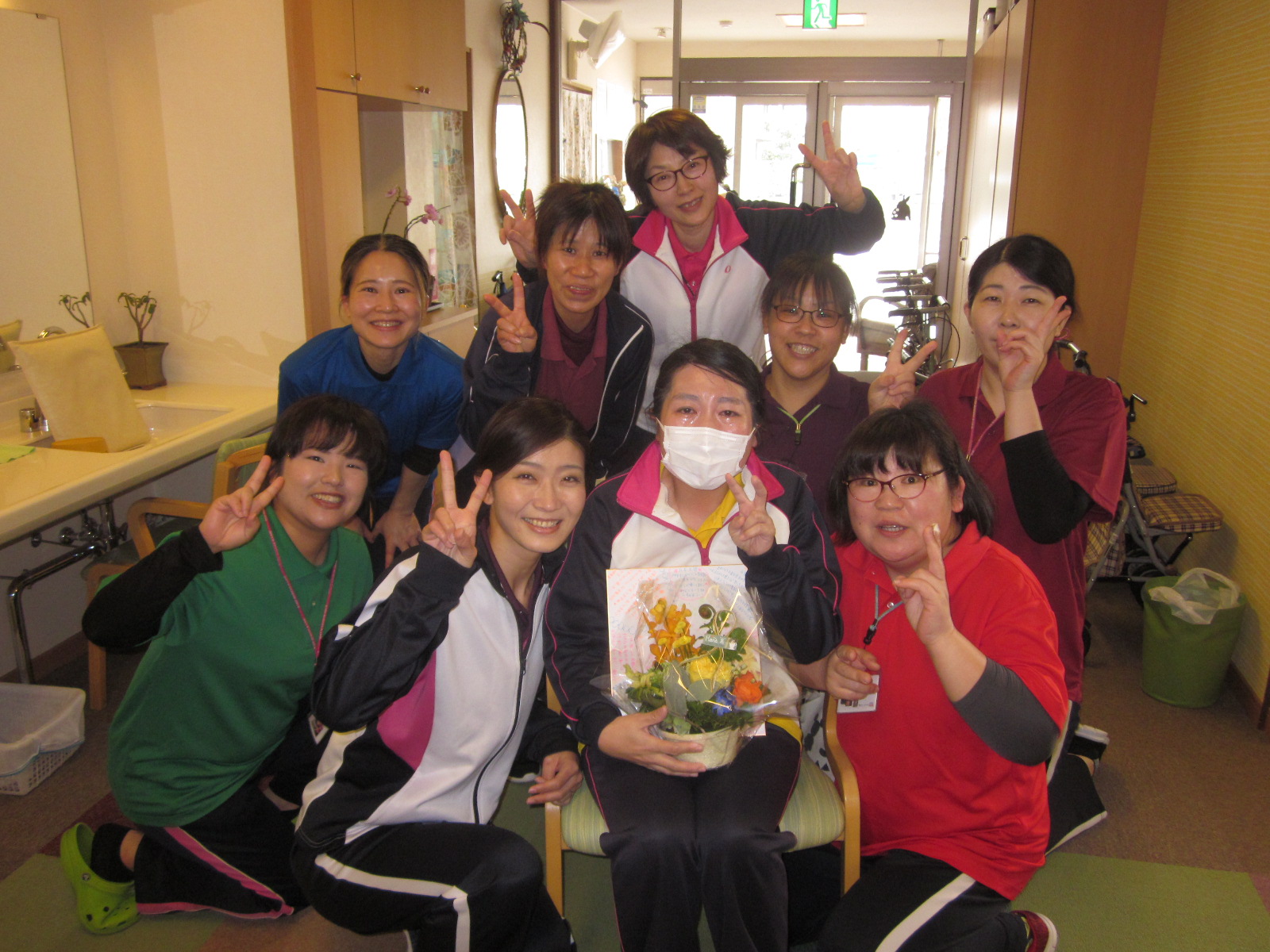 とっても元気で笑顔の素敵なスタッフが長期休暇を取る事になり、淋しいけどしばしのお別れ(/_;)帰って来る時はもっとパワフルになって戻って来てね、利用者様も待ってるよと声掛けされていました、笑顔での旅立ちです