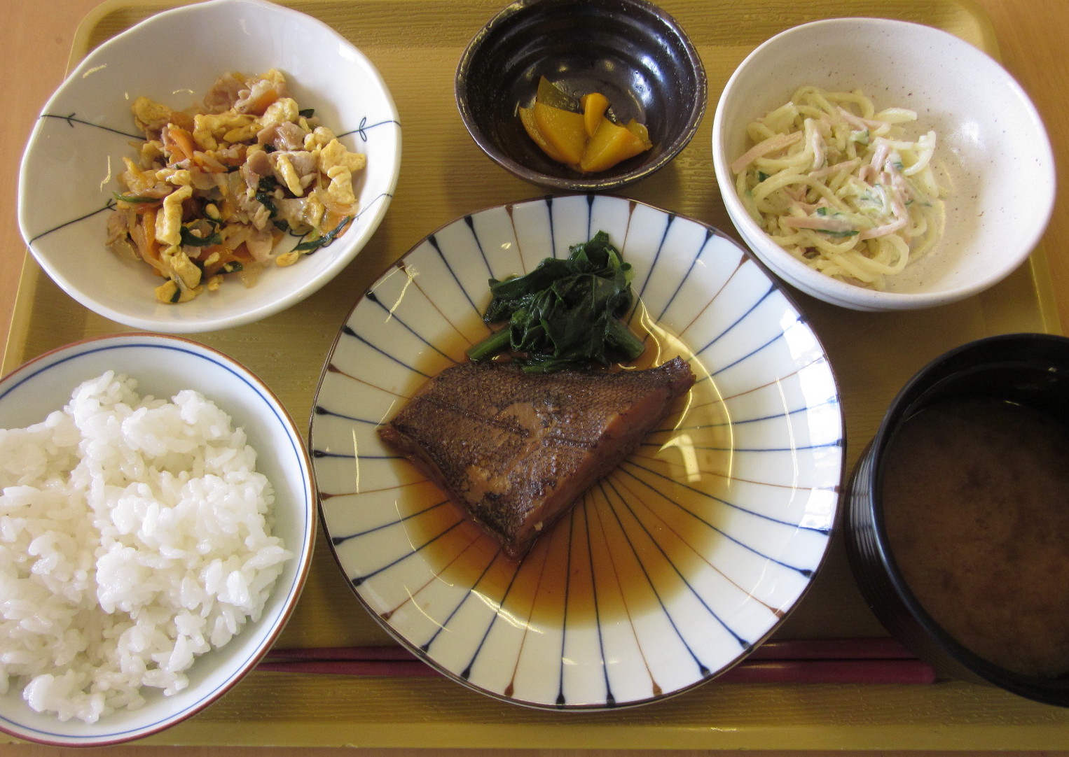 デイサービス赤石では、施設内で調理を行い、温かい作りたての食事を御利用者様にご提供させて頂いています!今回は、ある日の昼食をご紹介させて頂きます☆