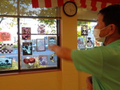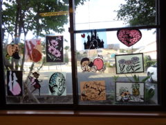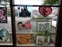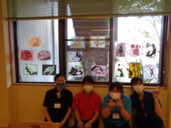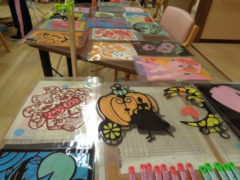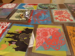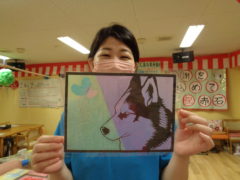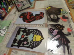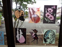 ディズニー、アニメ、花、風景、動物、仏教等様々な切り絵を行いました、本当に一枚に半日かけた作品もあります、しかし、人気だったの時間のかからなかった富士山でした、取り合いになる位でしたので急きょ数を増やし作りました、週5回来られている方は5枚選ばれています