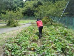 デイサービス福江の畑に、さつまいもの花が咲きました