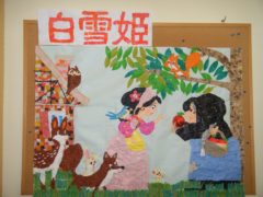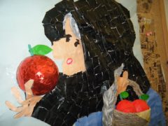 グリム童話の白雪姫の、毒リンゴの場面を貼り絵にしてみました