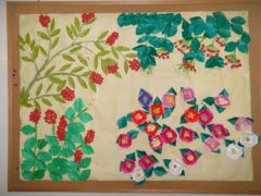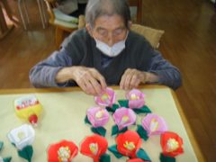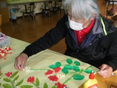 お花紙を駆使した千両と万両、折り紙で作った椿が