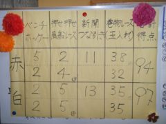 押せ押せ風船レースや新聞綱引き、ベンチホッケーなど