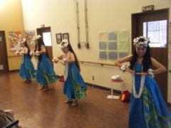 フラダンスグループの方4名が、ボランティアに来てくださいました