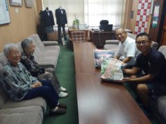 職員一名、ご利用者様二名で、直接寄付に伺いました