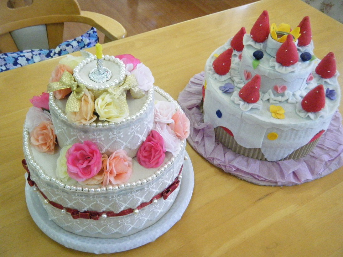 段ボールやレース、パールを使い素敵な仕上がりです!