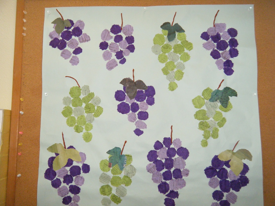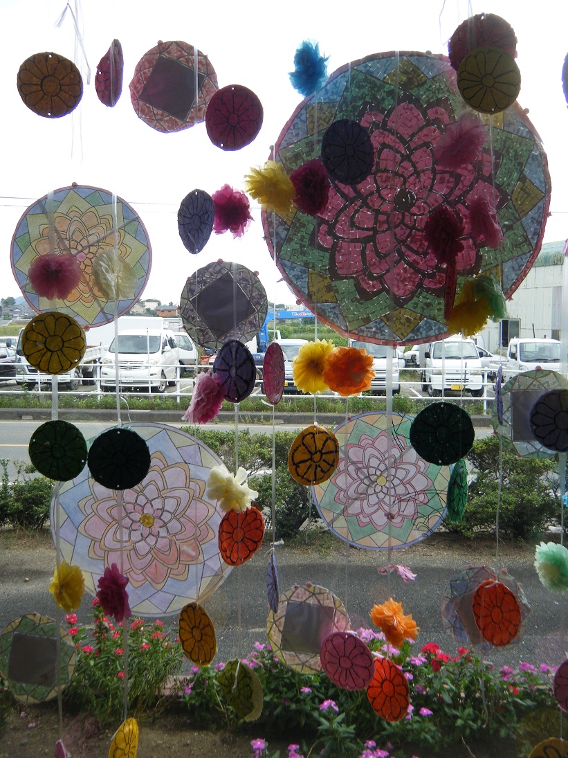 道路沿いに、お花の貼り絵を飾りつけました