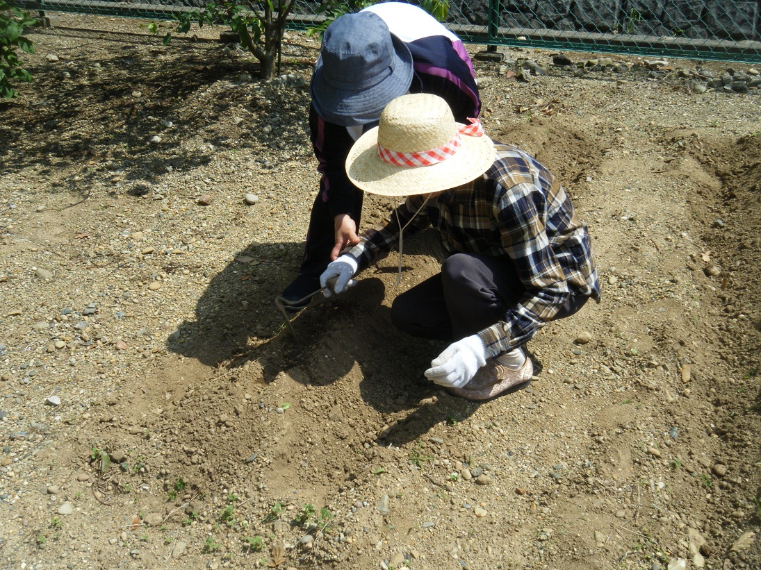 先月に植えたじゃがいもの芽も、すくすく大きくなっていました