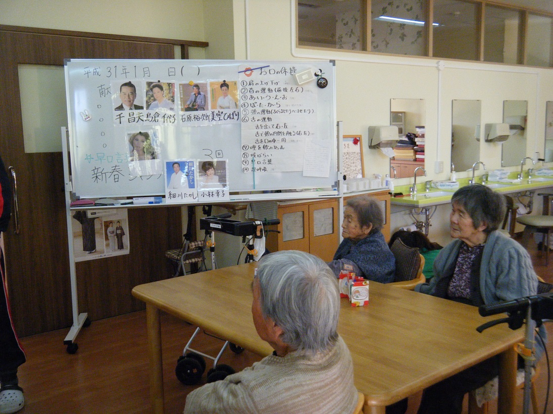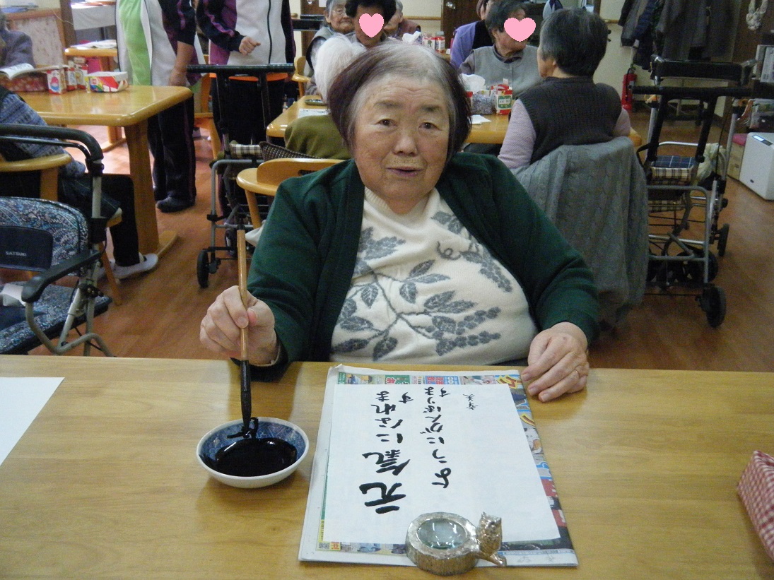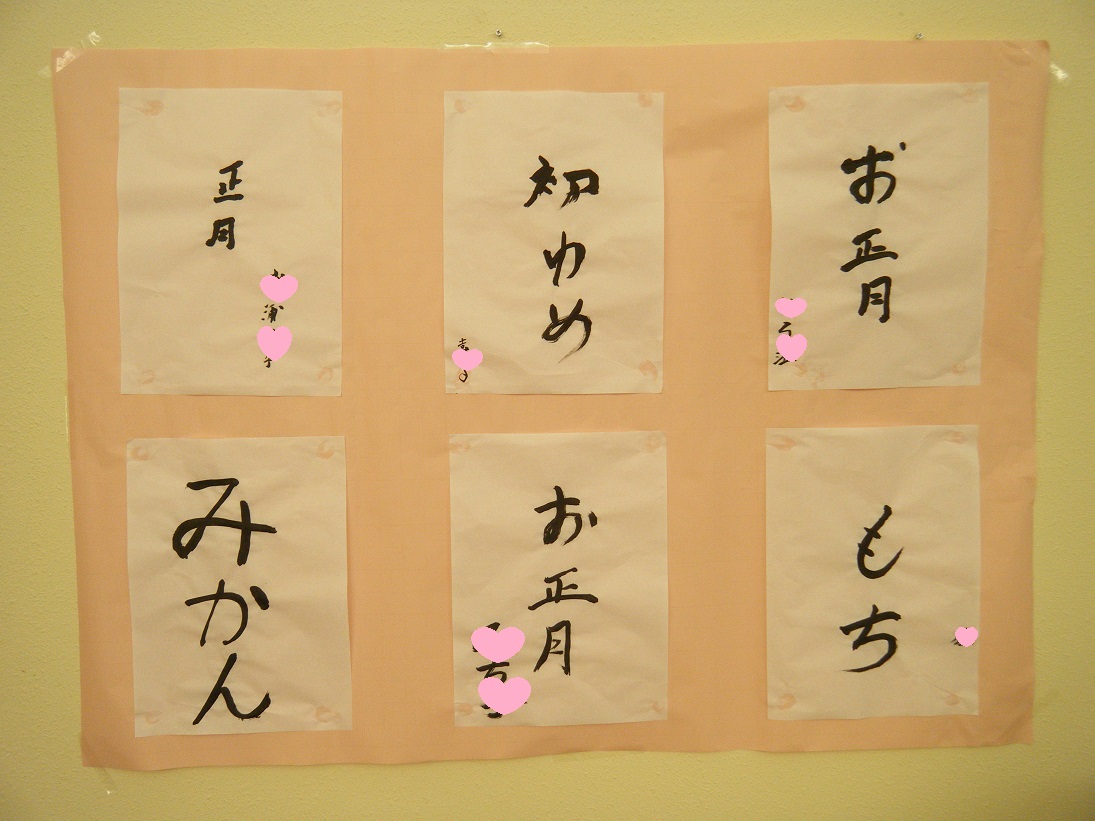 「歌あてゲーム」や、書初めをしました