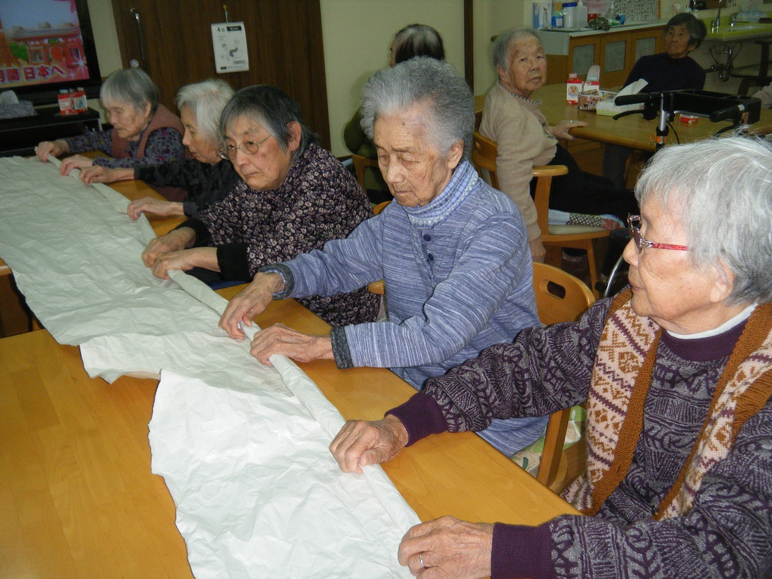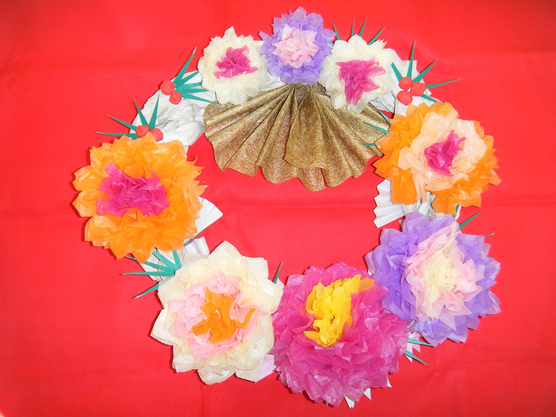 皆様にご協力いただき、大きなしめ縄飾りを作りました