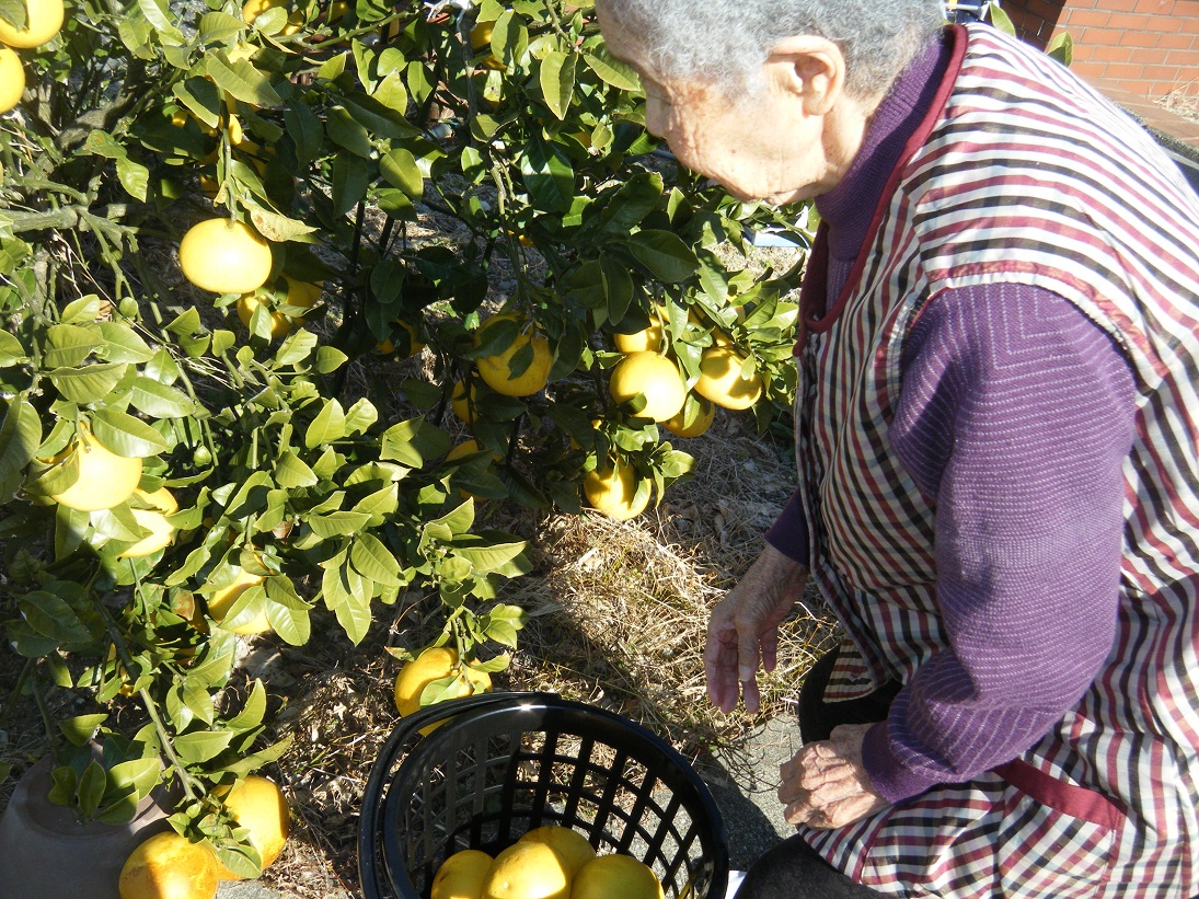 デイサービス福江の果樹コーナーにある、甘夏を収穫しました