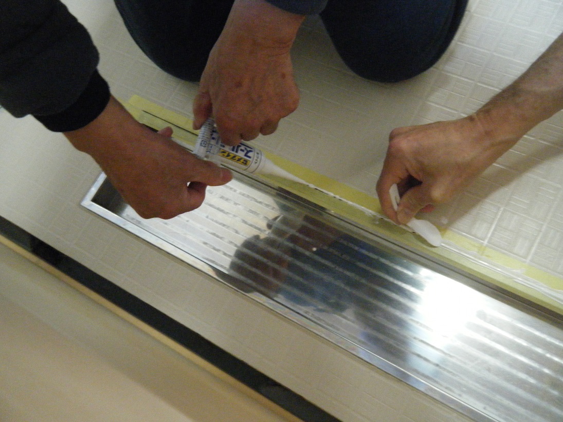 排水溝のコーキングがはがれてしまったので