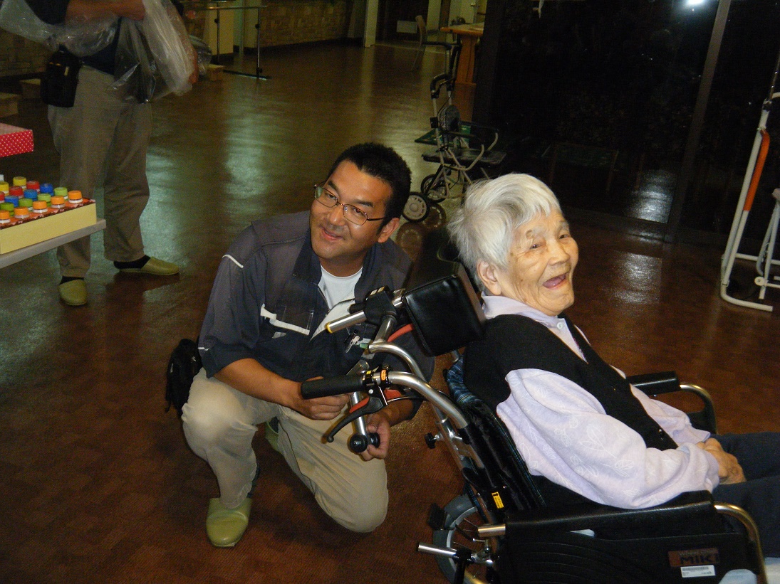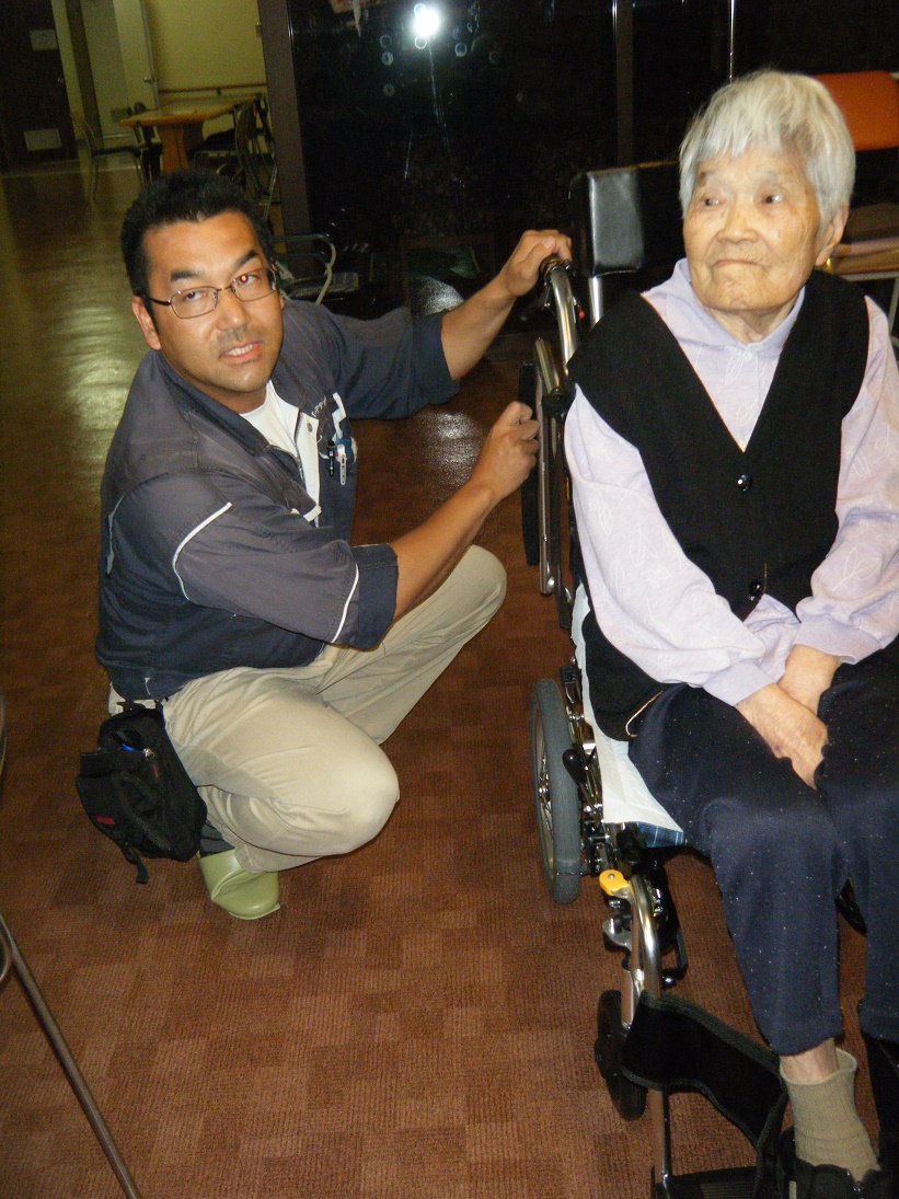 新しいタイプの車椅子の特徴や、操作方法の指導をして頂き