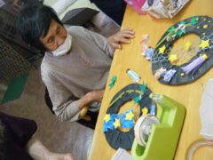 デイサービス福江の貼り絵の招き猫は
