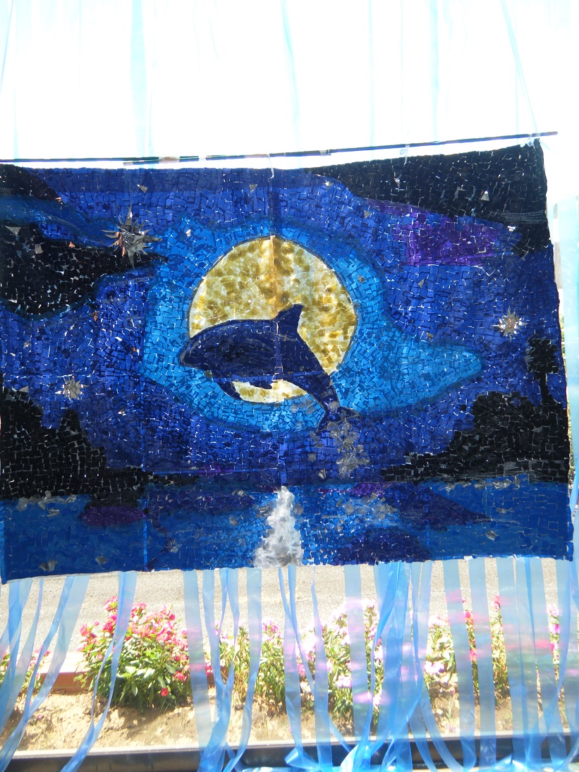 ミヤコワスレ、カスミソウ、ダイヤモンドの貼り絵です