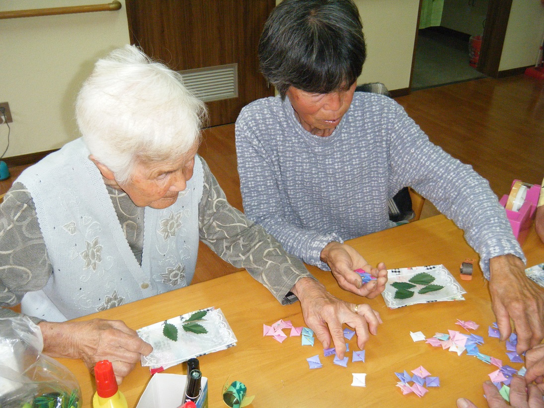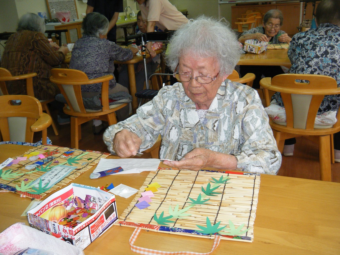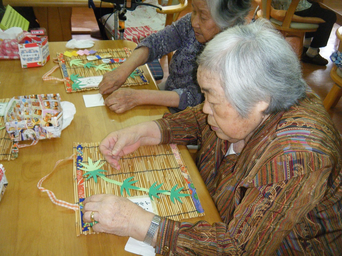 七夕に向け、すだれや千代紙などを使いとっても