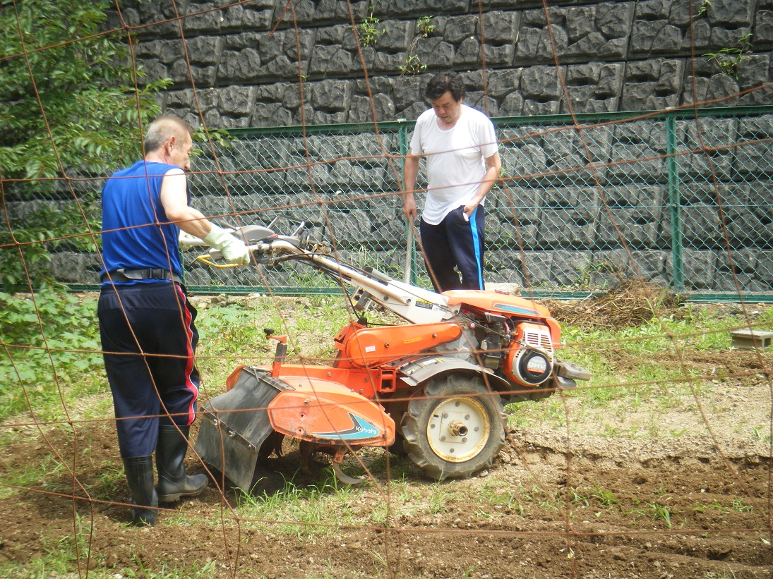 耕運機で耕し、隅っこの雑草を抜き、畝を作り……