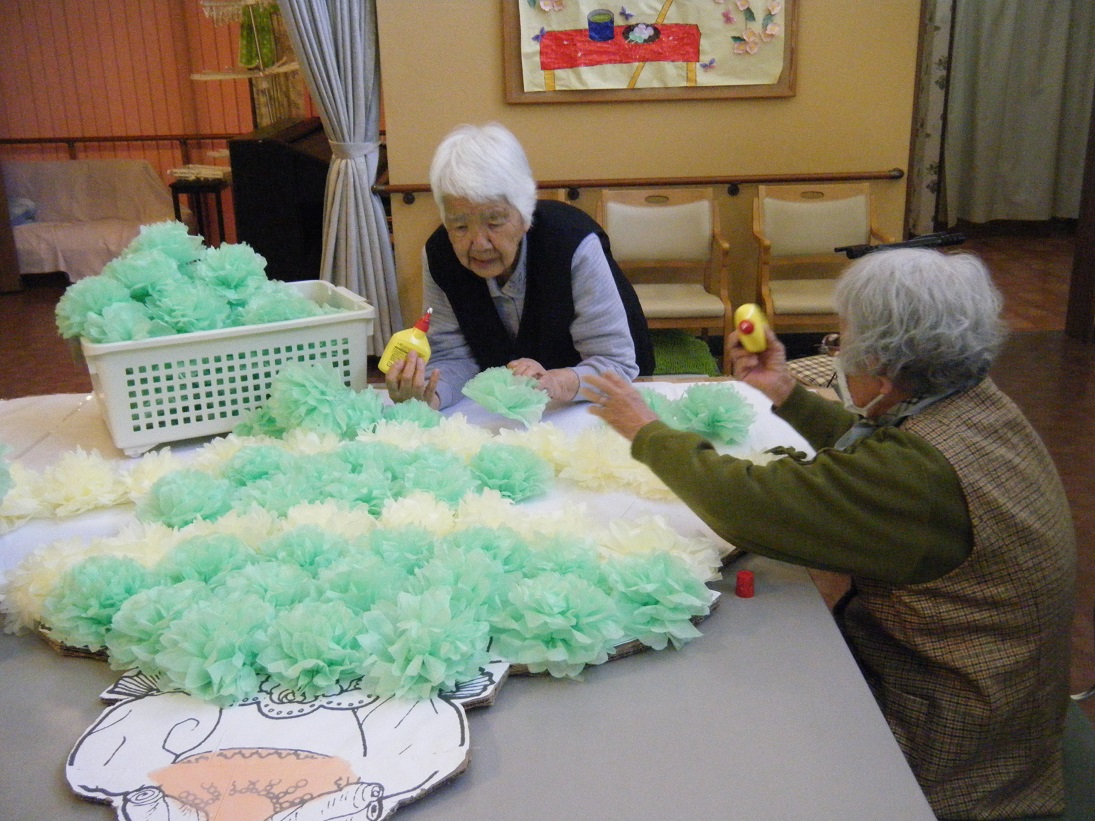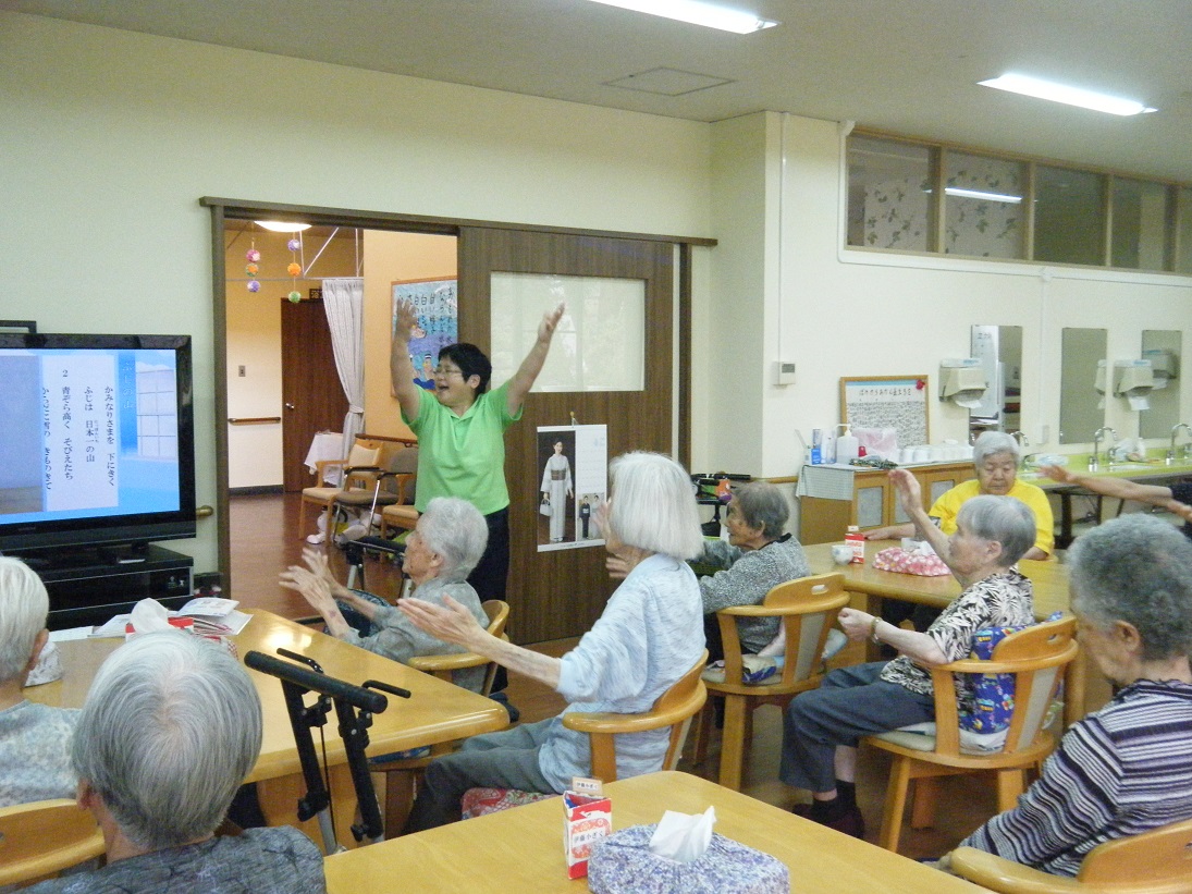歌詞を見ながら童謡や唱歌を歌ったり、体を動かしたりし