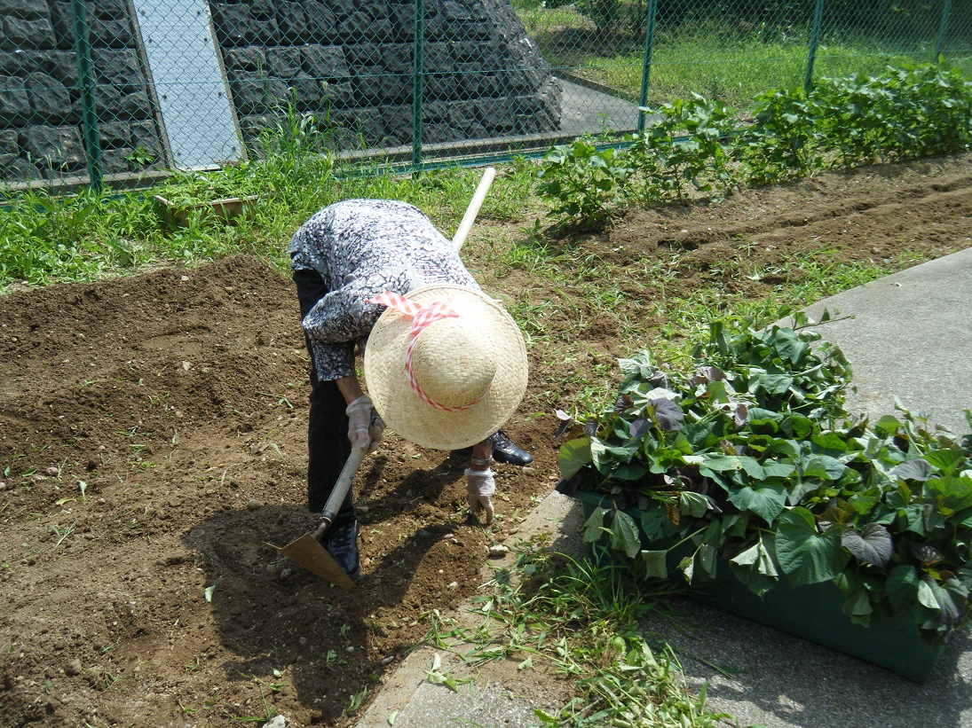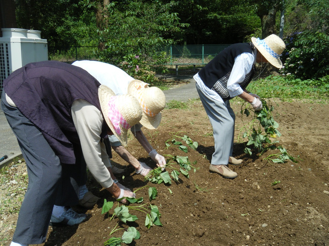デイサービスの畑で育てたじゃがいもの収穫をしました
