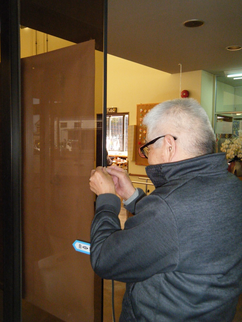 デイサービス福江の玄関の自動ドアから
