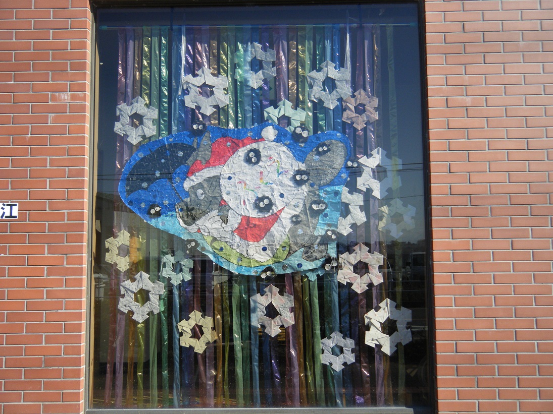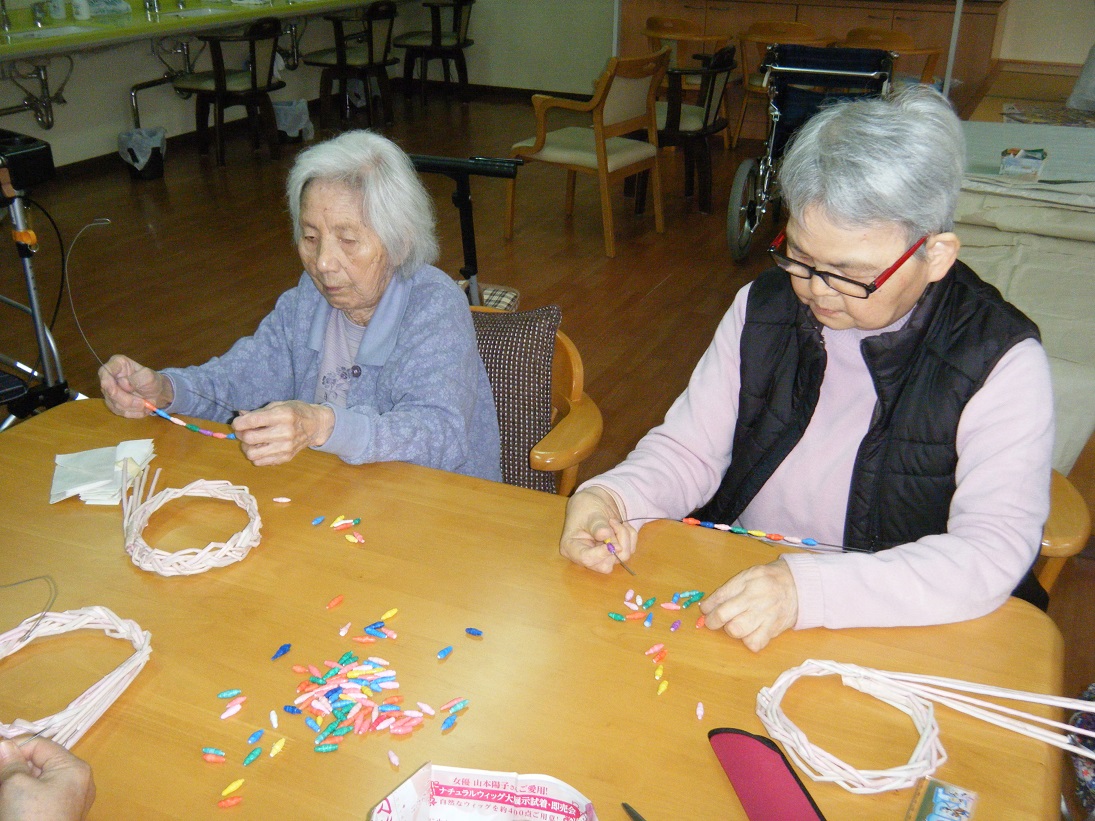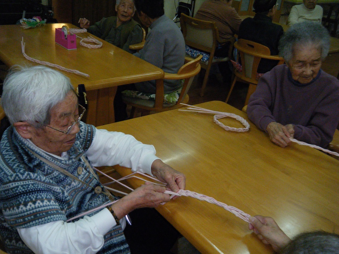 皆様にご協力いただき、大きなしめ縄飾りを作りました