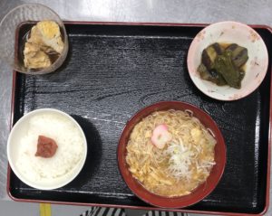 にゅう麺、ナスとピーマンの田舎煮と袋煮。